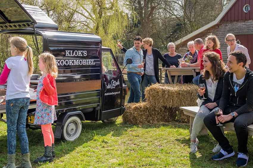 De Klok komt bij je langs, voor een barbecue aan huis of hapjes voor jouw bedrijfsfeest. Een originele en ludieke manier van catering met De Klok’s KOOKmobiel, een mini-food-truck met bak- en grillplaten. Dit typisch Italiaans driewielertje voor het bereiden van vlees en vis is op elke locatie inzetbaar. De Klok is continu in beweging!Meer informatie? Neem contact met ons op of kijk voor de mogelijkheden van catering in Eibergen en omgeving.