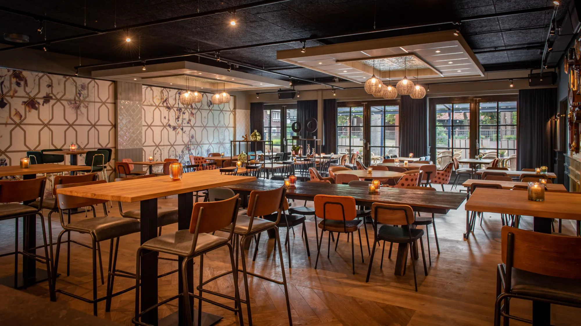 De sfeervolle feestzaal is multifunctioneel. Geluidsapparatuur met draadloze microfoons, een beamer, scherm en flipover nodig? Het ontbreekt je aan niets. De zaal is qua kleur op jouw huisstijl of de gewenste sfeer af te stemmen en aan te passen naar elke groepsgrootte. En wil je gebruikmaken van onze keukenbrigade? Diners, hapjes of buffetten, we bereiden alles in eigen keuken.