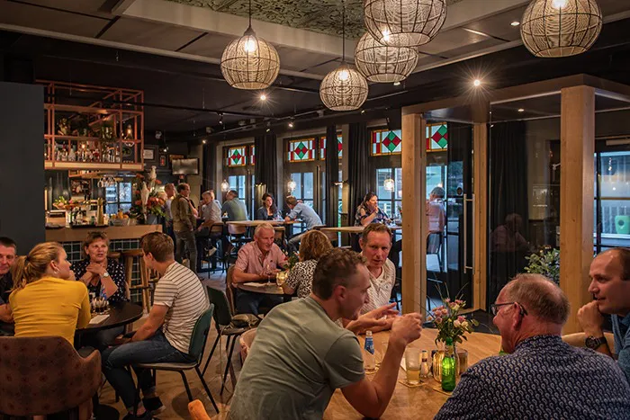 Genieten van een proeverij of lekker een hapje eten met collega’s na het werk? Een informele bedrijvenborrel? Het Grand Café van De Klok in Eibergen ademt door de inrichting en accessoires een Ierse sfeer uit. Het is er gezellig en ongedwongen en op woensdagen tot in de late uurtjes te huur. Op andere doordeweekse dagen in overleg. Naast het café is een riant terras. En gaat het regenen? Dan kun je altijd plaatsnemen onder onze terrasoverkapping of op koude dagen bij onze open haard.